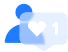• A imagem de uma pessoa em azul ao lado de um ícone de coração dentro de um balão de diálogo, indicando que a pessoa recebeu uma curtida.